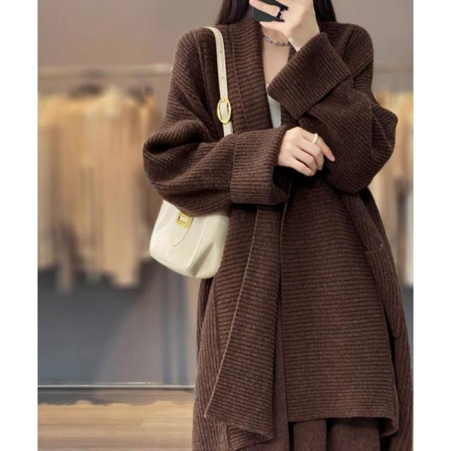 ニットカーディガン ロング丈 秋冬 韓国