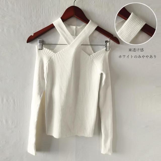ニットトップス ホルターネック 肩出し【ゆうパケット可】