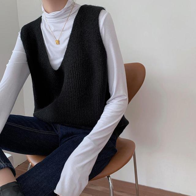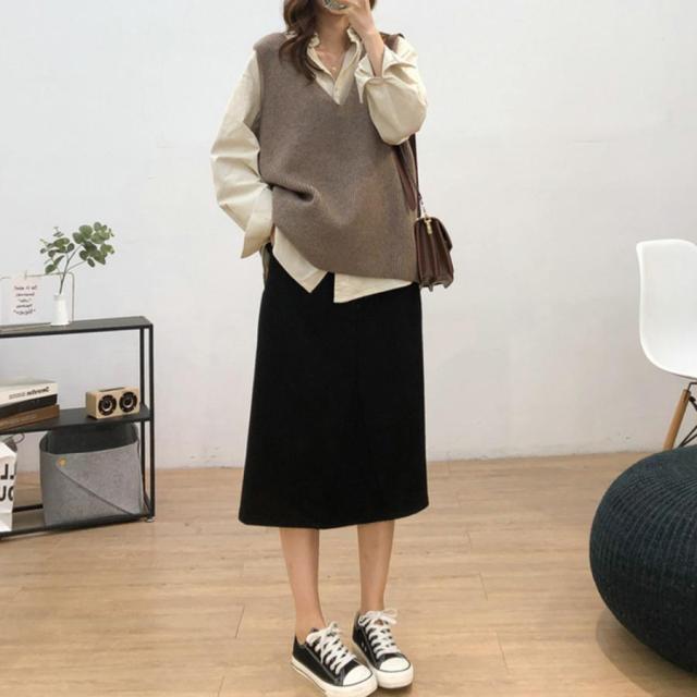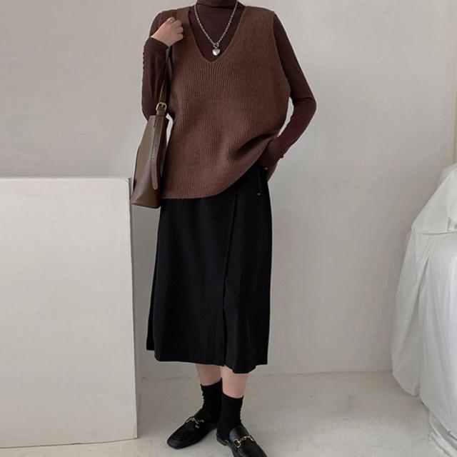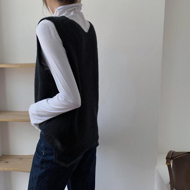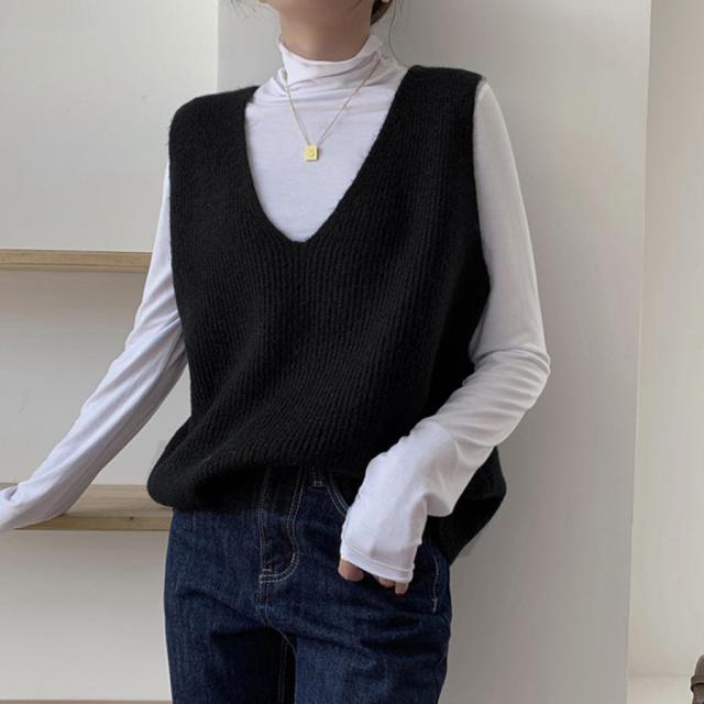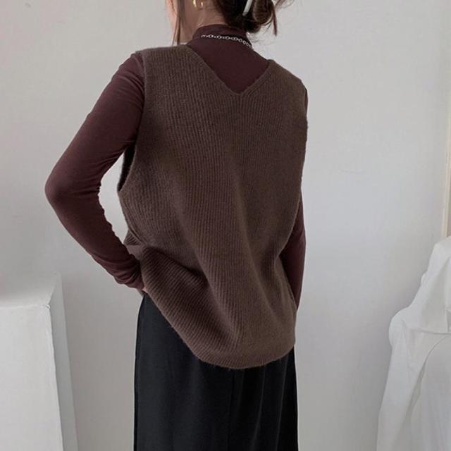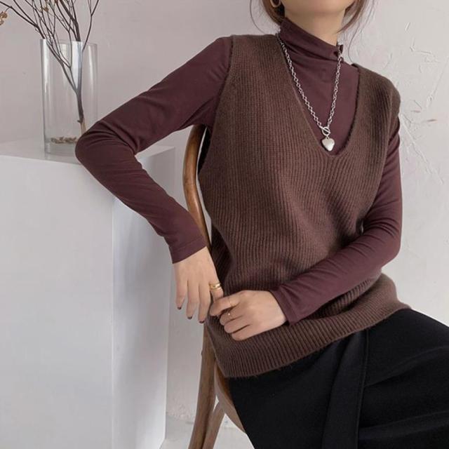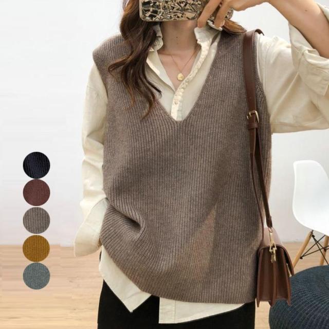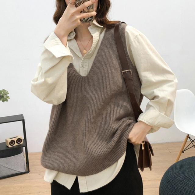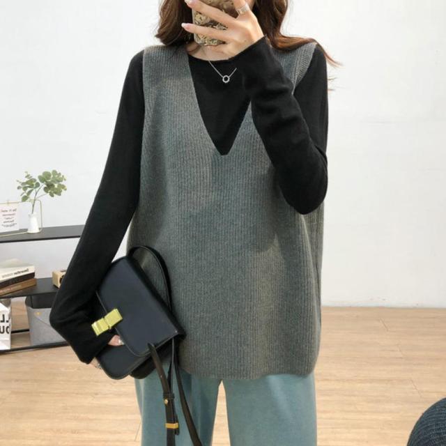 韓国ニットチョッキ ノースリーブ ニットトップス 重ね着風 レイヤードベスト レトロ体型カバー ニットジレ 20代30代
