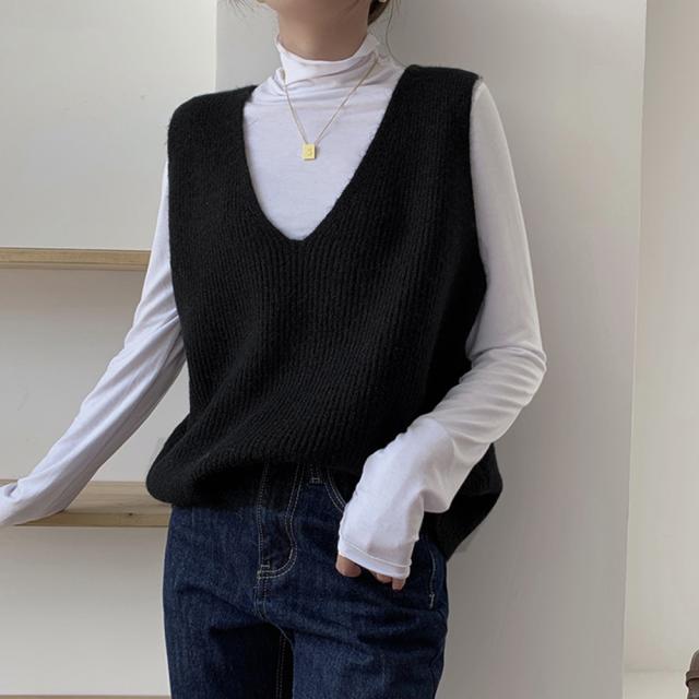 リブニットベスト レディース vネック【ゆうパケット可】