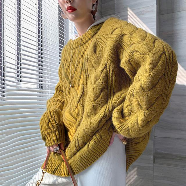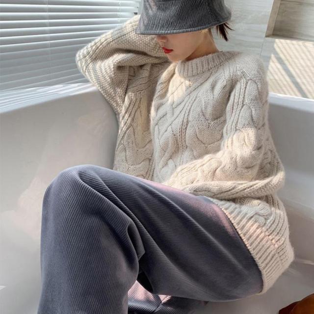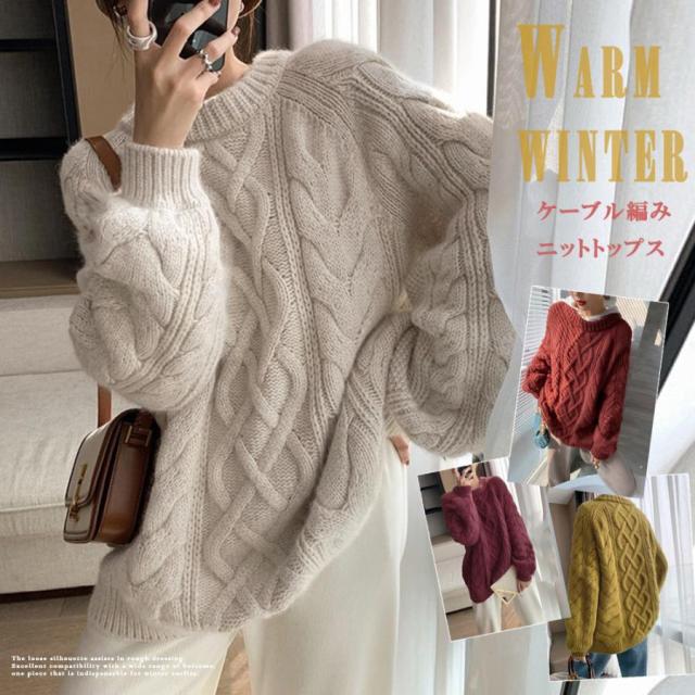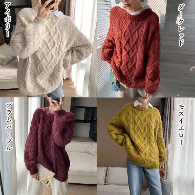 韓国 ケーブル編み ニット レディース