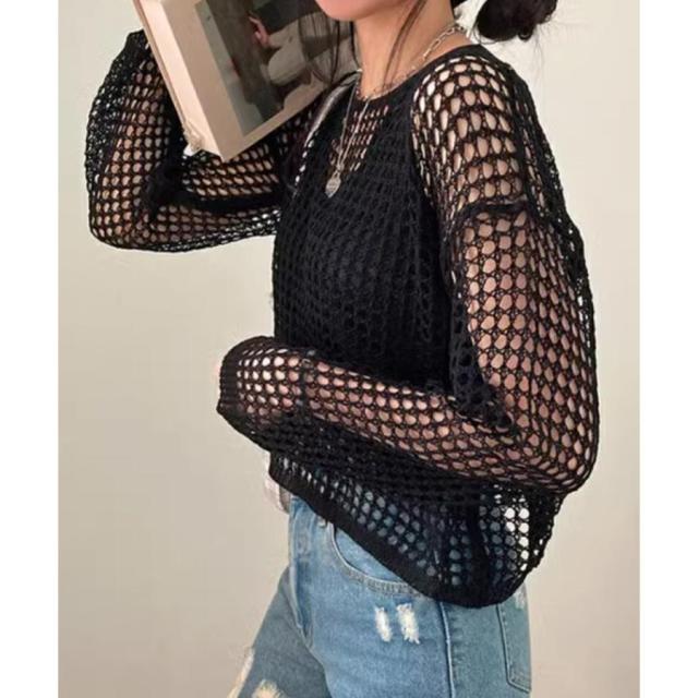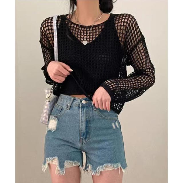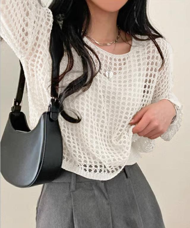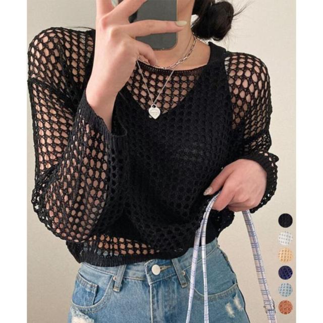 ざっくりと編まれたクロシェ編みで透け感が楽しめるアイテム