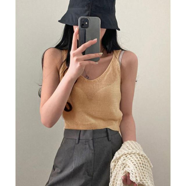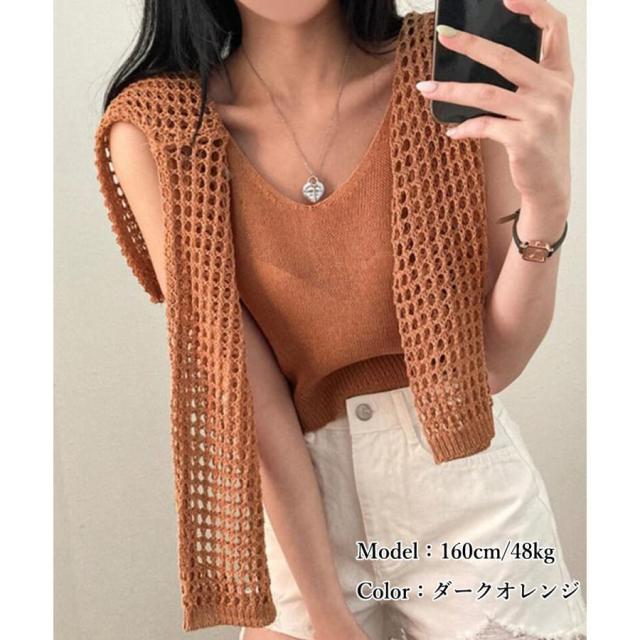 ショート丈ニットトップス セットアップ 透かし編みトップス ニットキャミ 体型カバーニットアンサンブル カジュアル韓国風