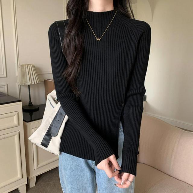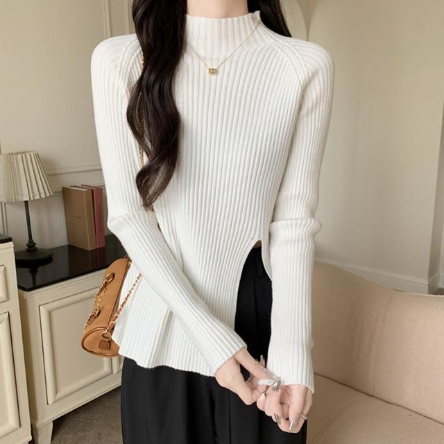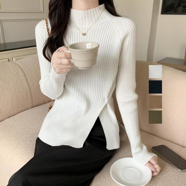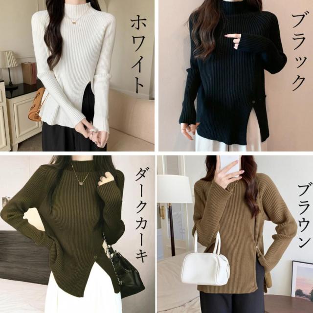 ニットトップス スリット入り 春秋冬【ゆうパケット可】
