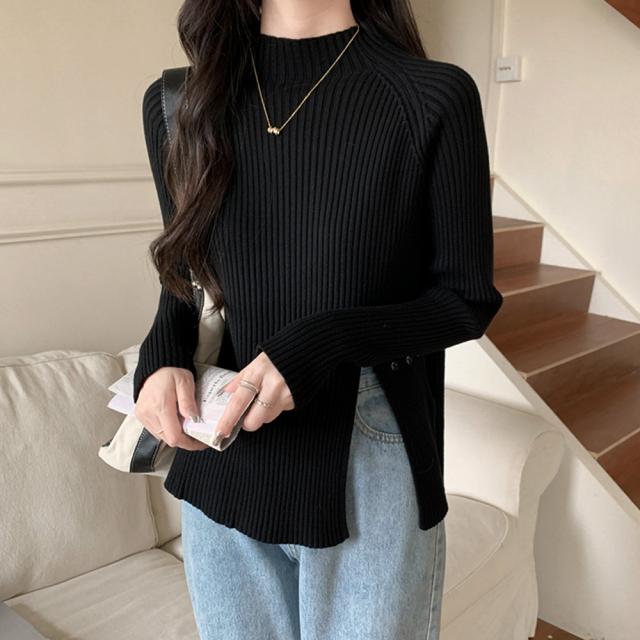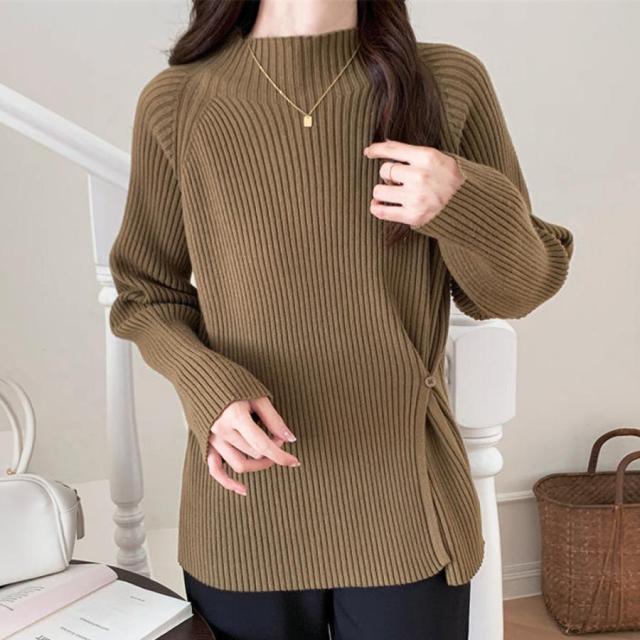 ニットソー モックネック カットソー リブ編み ボタン付き ニットセーター 通勤通学 韓国ファッション インナーニット