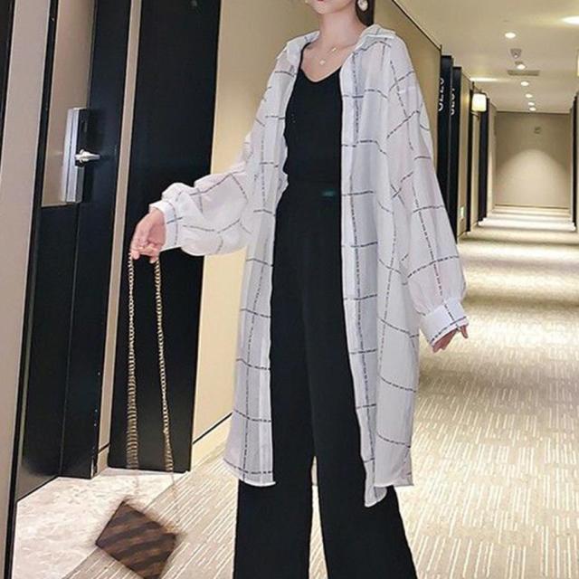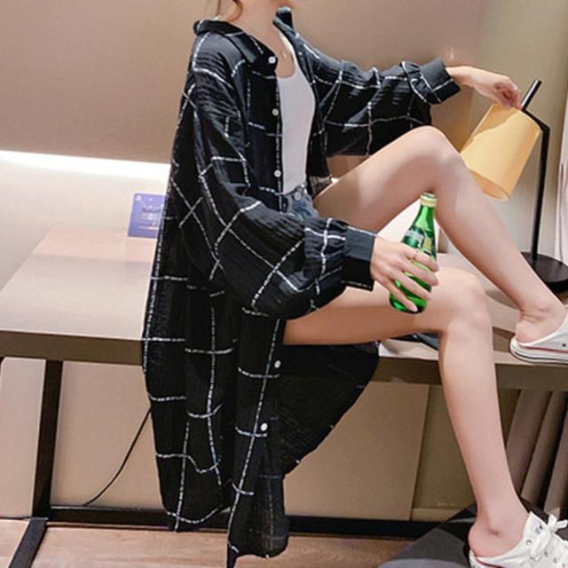 ロング カーディガン チェック柄シャツ【ゆうパケット可】