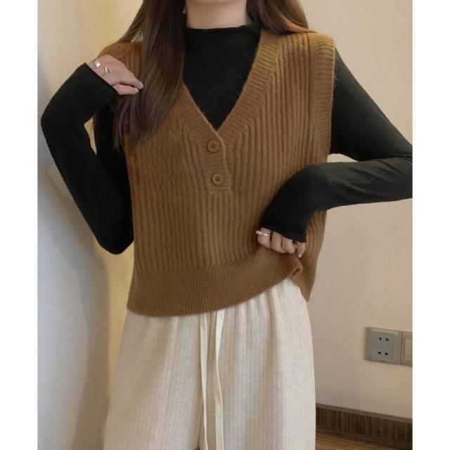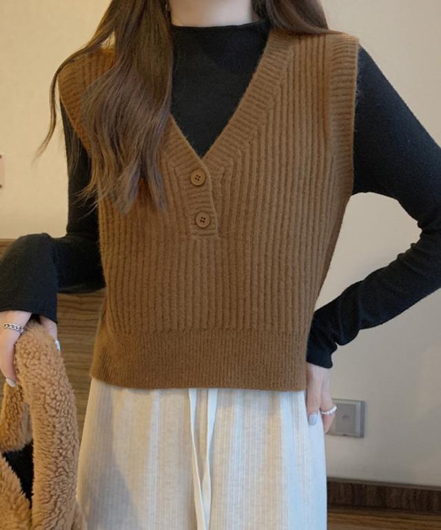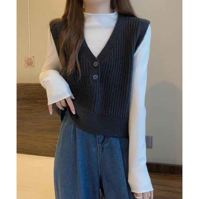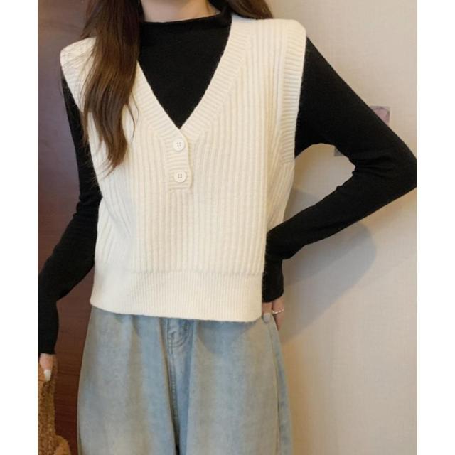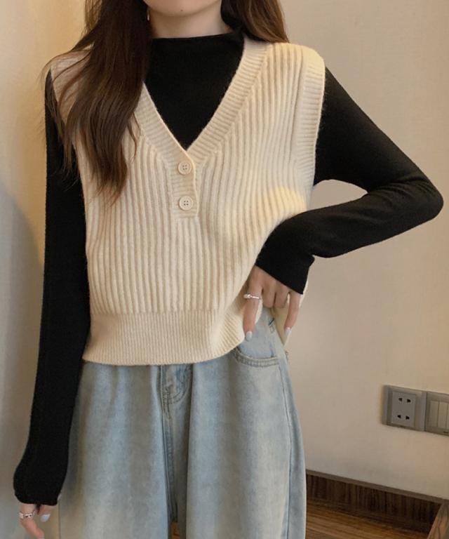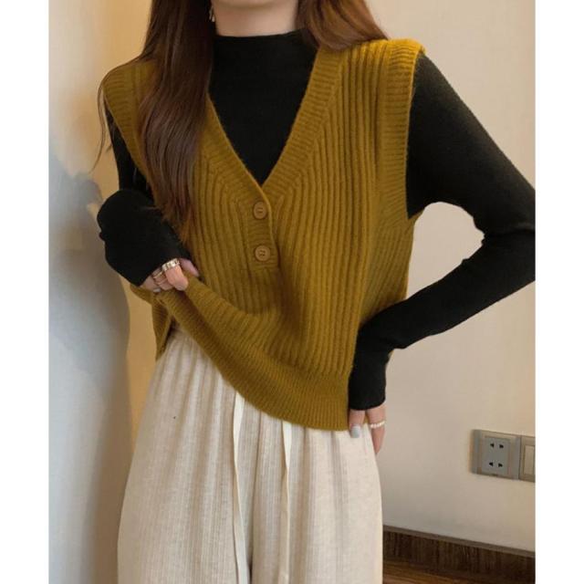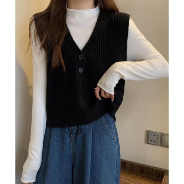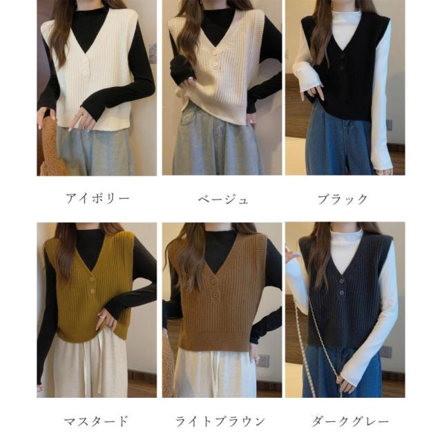 レディース ニットトップス 重ね着 レイヤードベスト カジュアル お洒落 ノースリーブ 着やせ プルオーバー20代30代