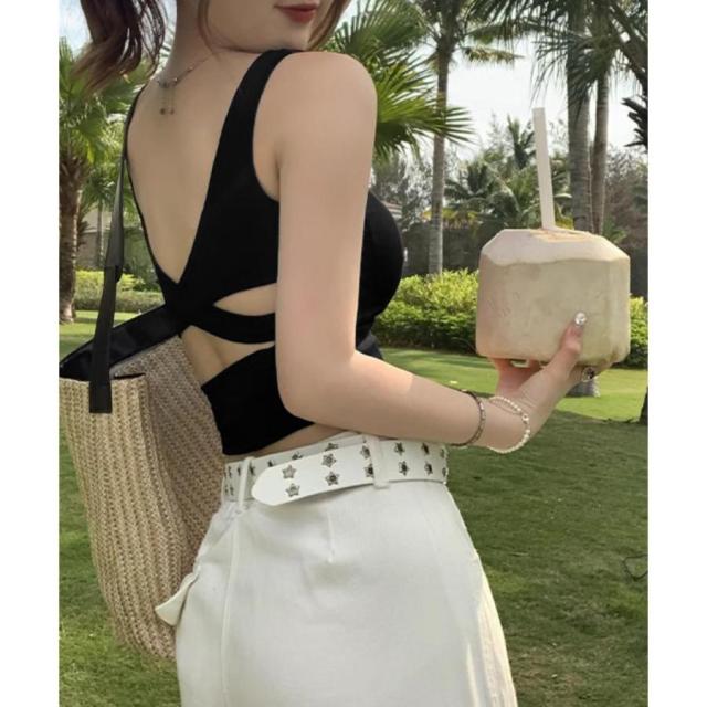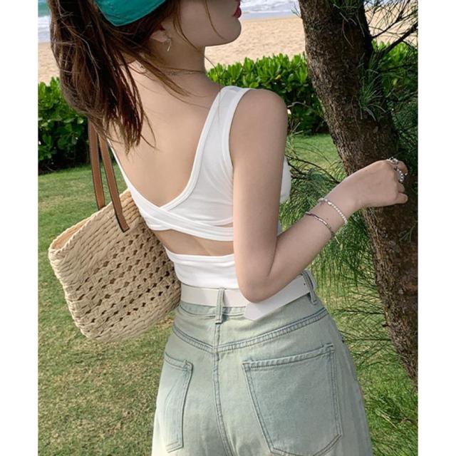 レディース バッククロス クロップドインナートップス 大人カジュアル ショート丈夏服 へそ出し セクシーインナーウェア