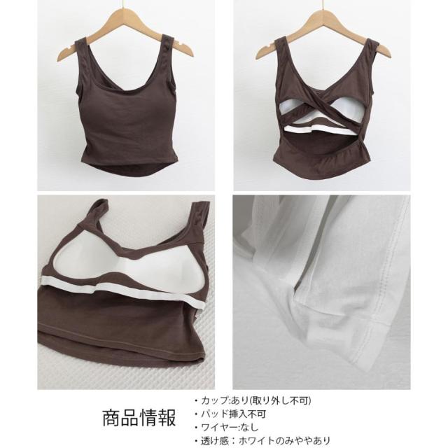 カップ付きで、一枚でも安心して着られるクロスバックタンクトップ。