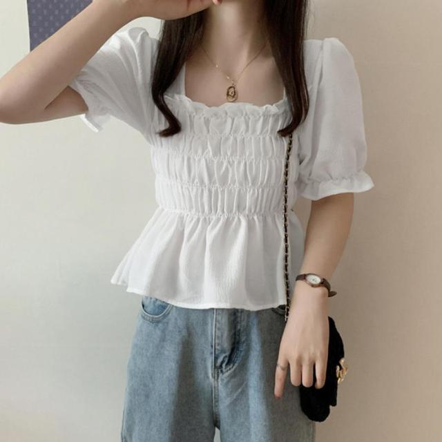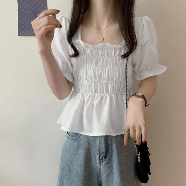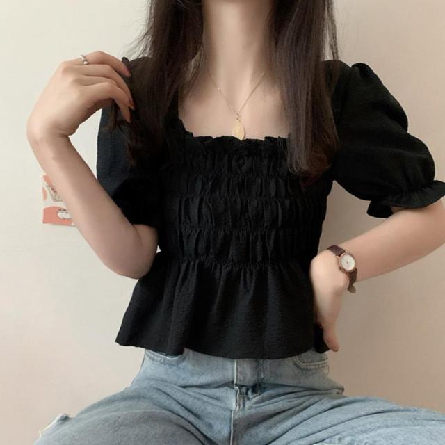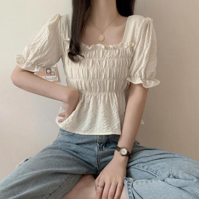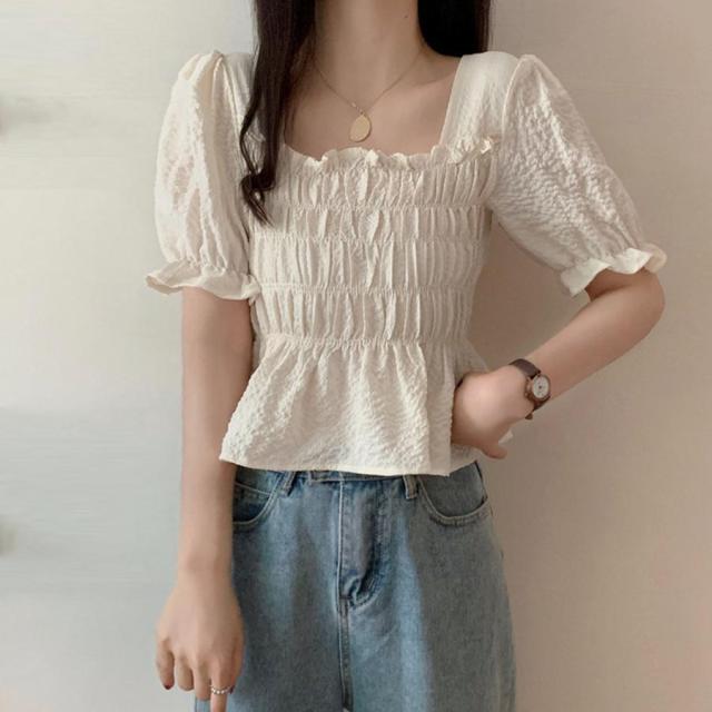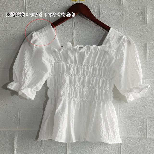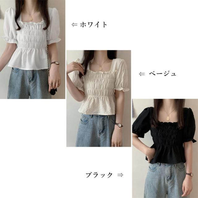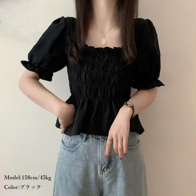 スクエアネック ブラウス シャーリング【ゆうパケット可】