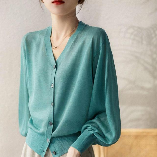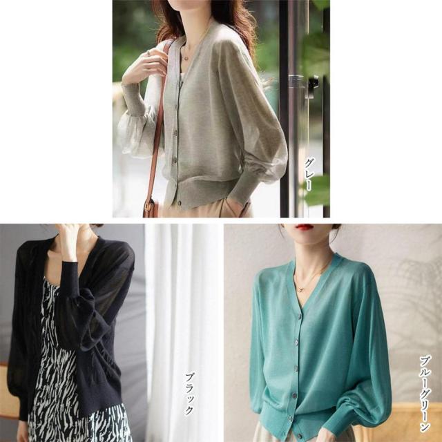 ニットカーディガン レディース 長袖 UV対策 薄手 アウター 韓国風 Vネック 軽量カーデ 冷房対策 体型カバー春秋夏