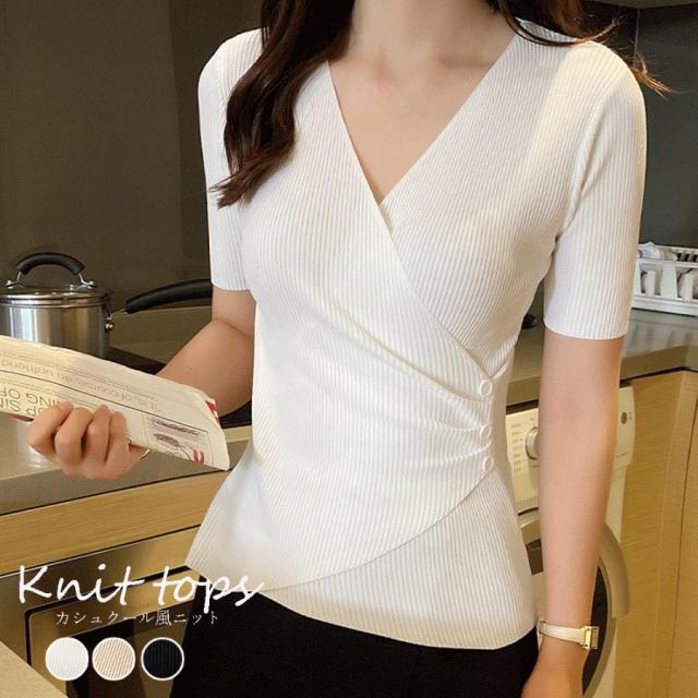 カシュクール リブニット ニットトップス【ゆうパケット可】