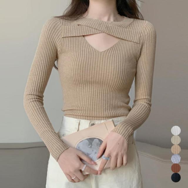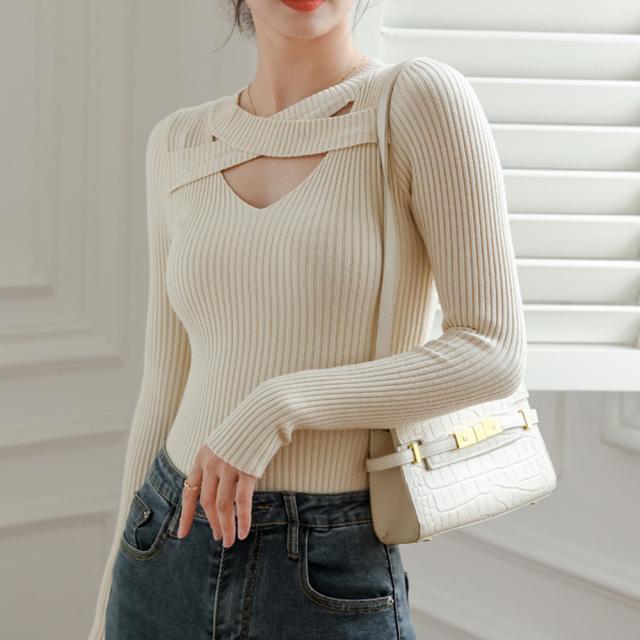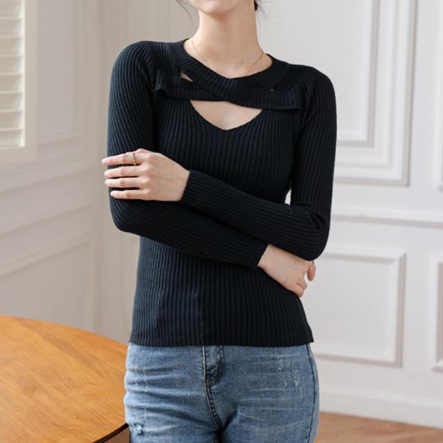 フロントクロス リブニット 韓国 春秋【ゆうパケット可】