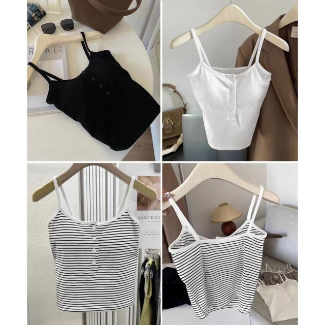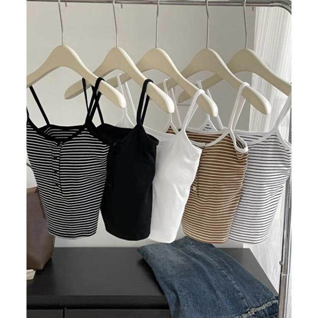 白や黒、ボーダー柄など全5色展開のカップ付き一体型キャミソール