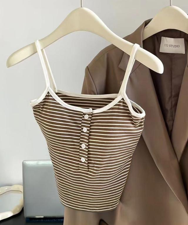 レディースブラキャミ ショート丈 ノンワイヤー Uネックキャミソール ボーダー柄インナー パッド付き インナーウェア夏服