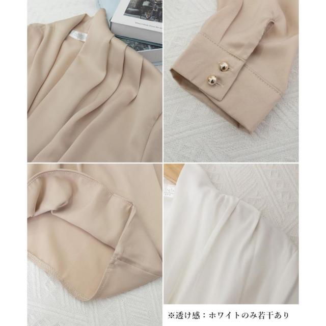 ドレープデザインが女性らしいシルエットを引き立て、オフィスからカジュアルまで幅広いシーンにマッチ