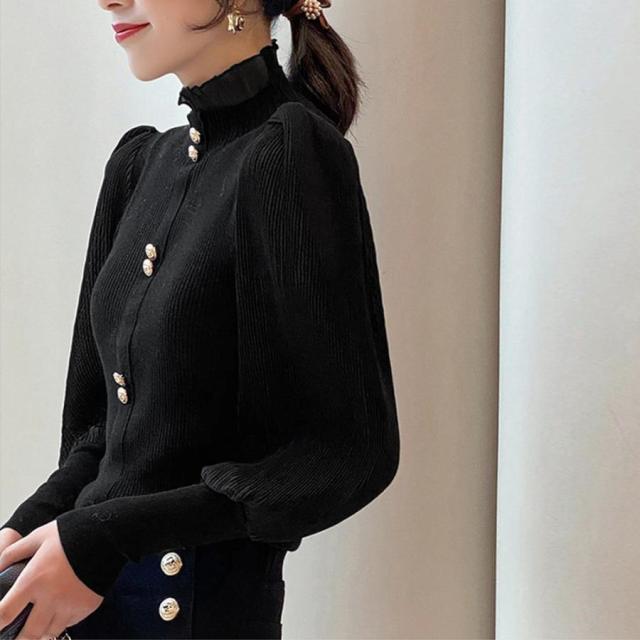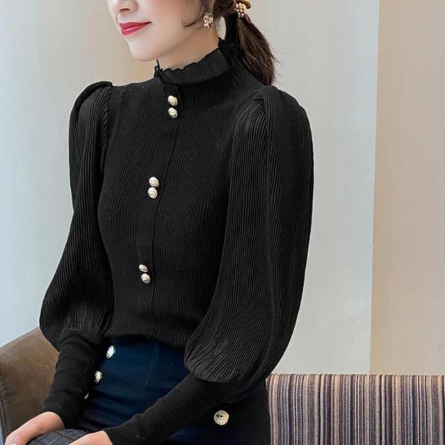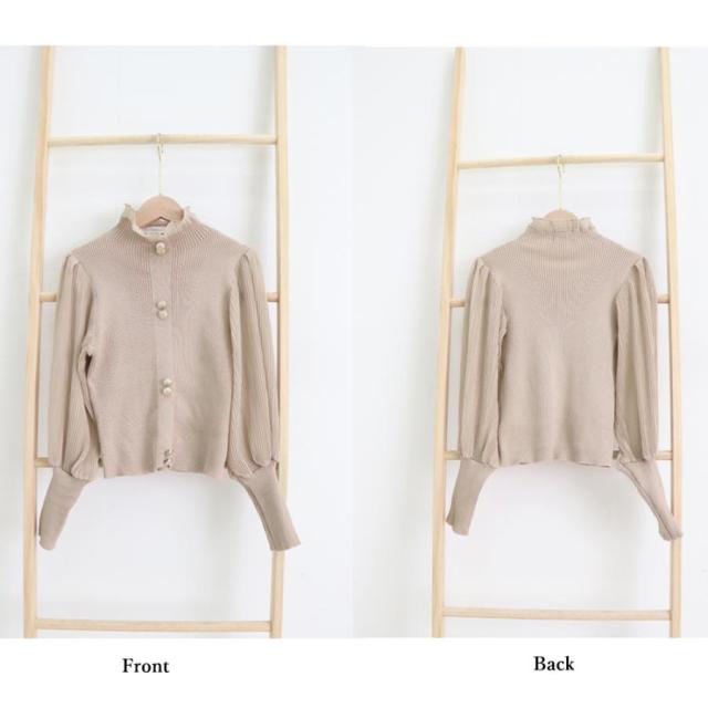 バルーン袖 リブニットトップス 韓国【ゆうパケット可】