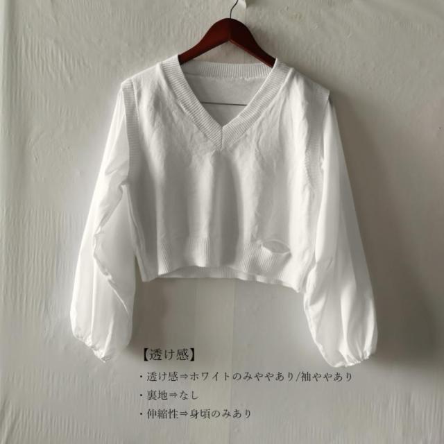 透け感:ホワイトのみややあり/袖ややあり