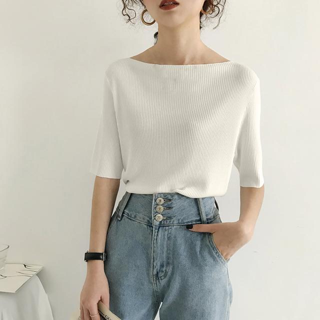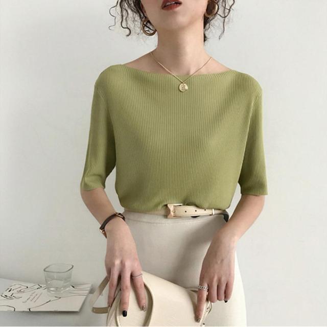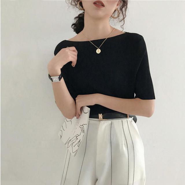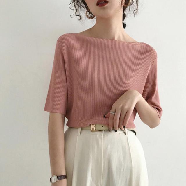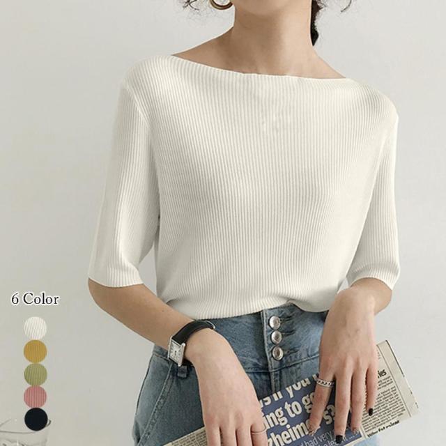 ニットトップス ボートネック ニットソー 無地 プルオーバー シンプル 韓国ファッション