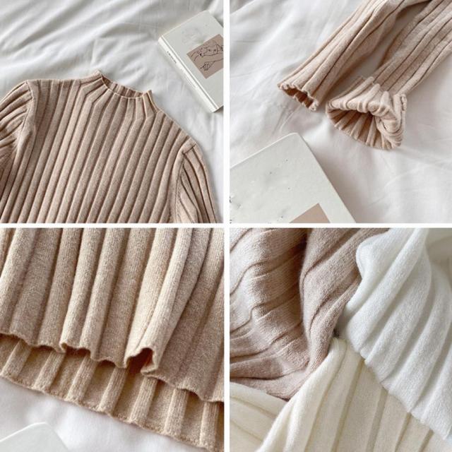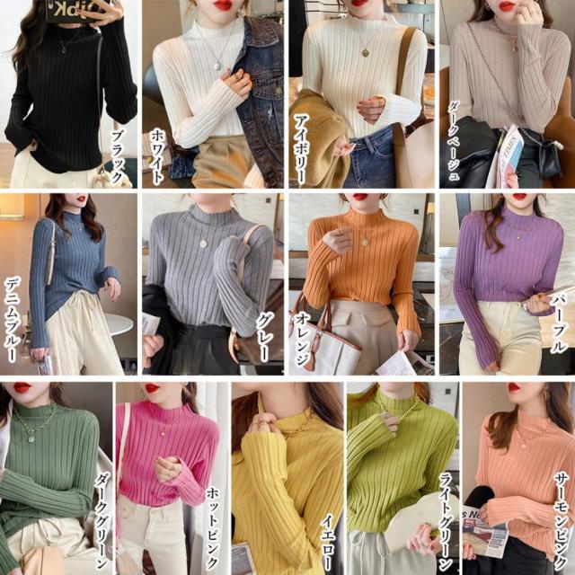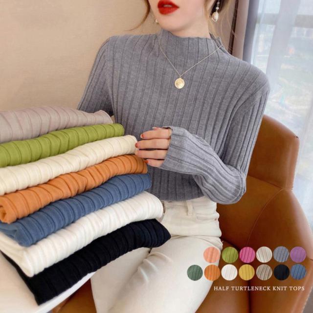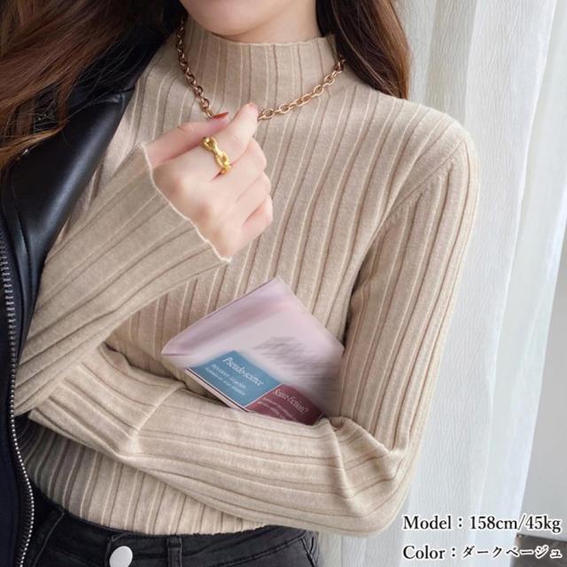 リブニットトップス プチハイネック【ゆうパケット】