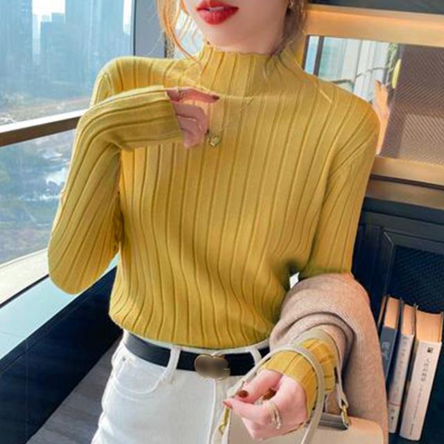 コンパクトな着心地が女っぷりを高めてくれる長袖リブニットトップス