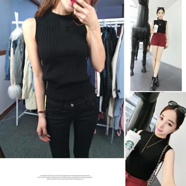 韓国風クルーネックニット ショート丈インナートップス ノースリーブ 重ね着ニットタンクトップ 着やせ 春夏秋冬ニットソー