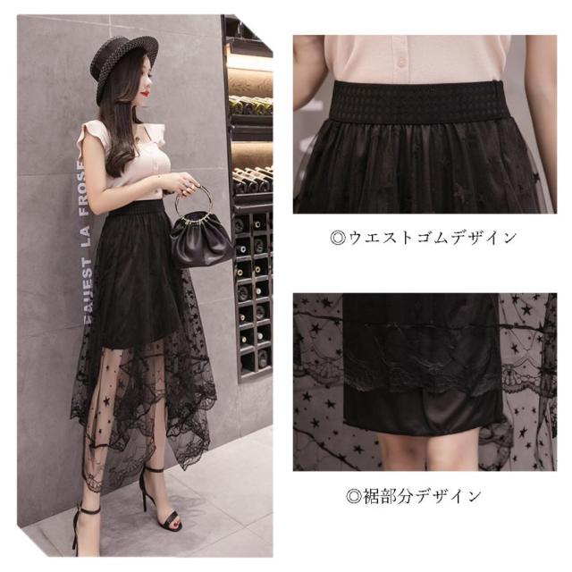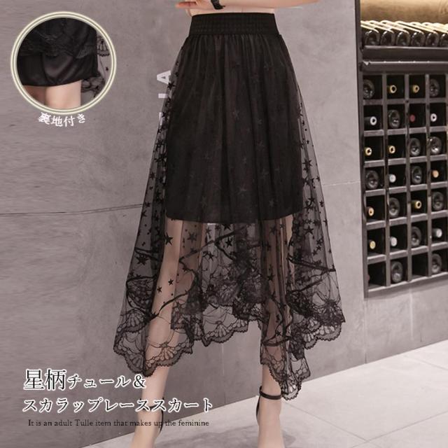 フレア チュールスカート 星柄 レース【ゆうパケット可】