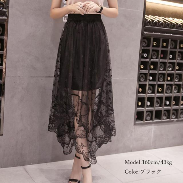 ロングスカート シアーチュール アシンメトリー ボトムス ウエストゴム 裾不規則