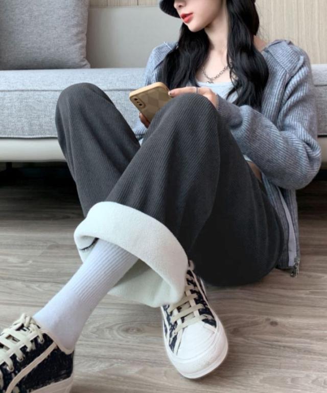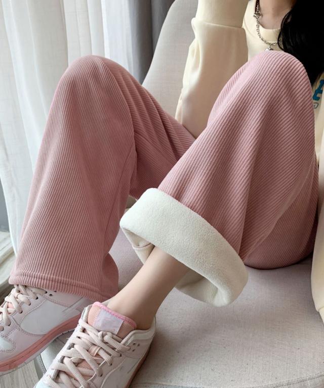 裏起毛の暖かいコーデュロイのワイドパンツ。