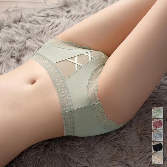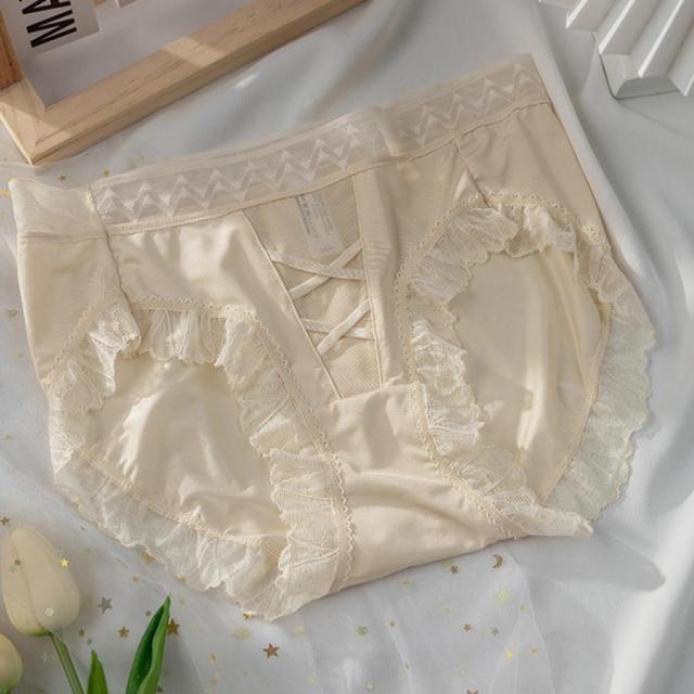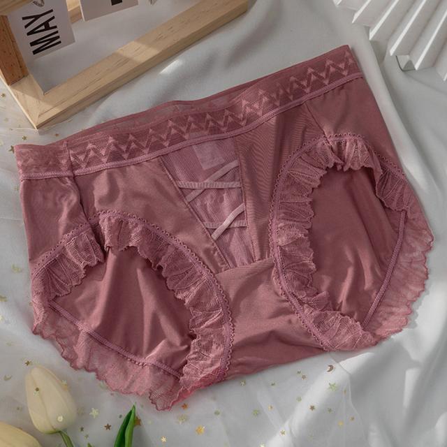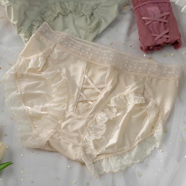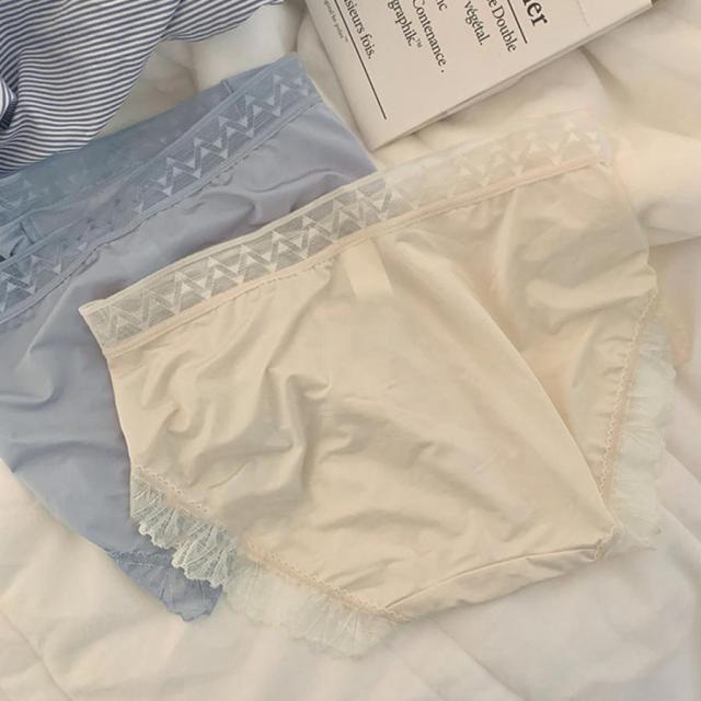 ウエストと脚口にあしらわれたレースは体に程よくフィット、敏感肌でも痒くなりにくく締め付け感もなくて快適