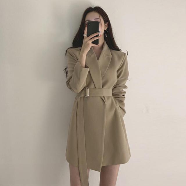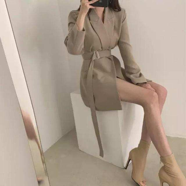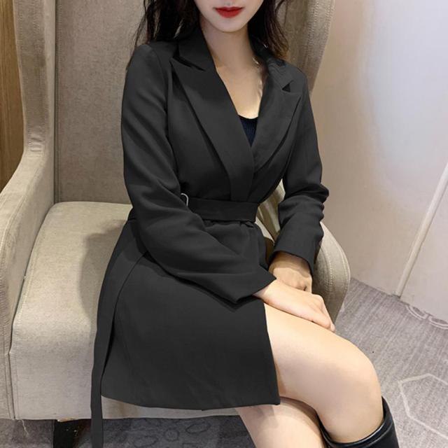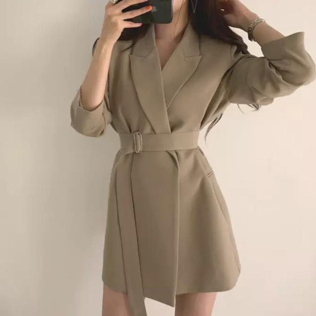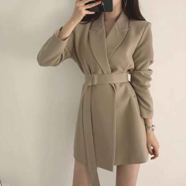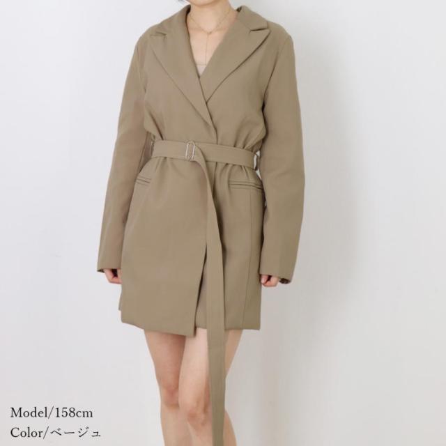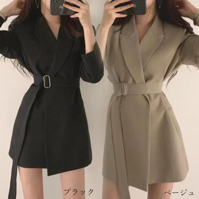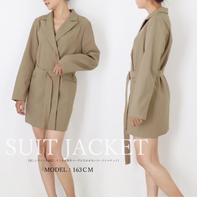 スーツジャケット レディース ベルト付き スーツアウター 長袖 Vネックス コート アウター 秋冬 無地 羽織【ゆうパケット可】
