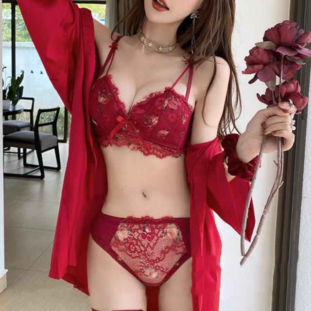 花柄刺しゅうがとてもかわいいレースランジェリーセット