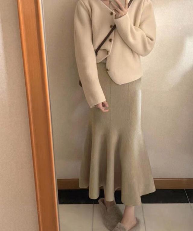 360度動きのある綺麗なシルエットを演出、歩く度に華やかなラインを描く韓国DESIGNの新作ニット生地マーメイドスカート