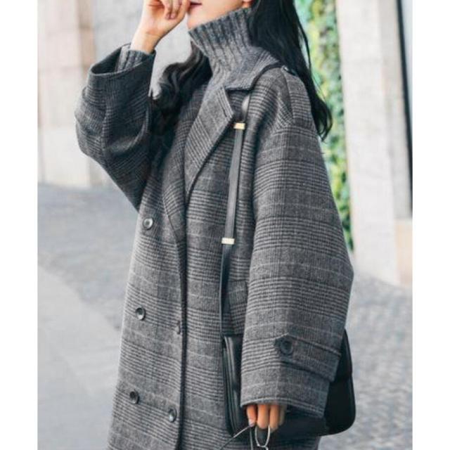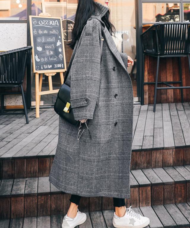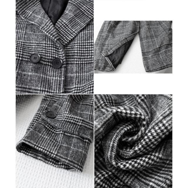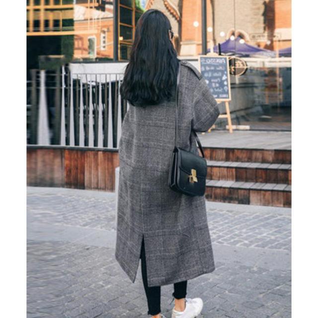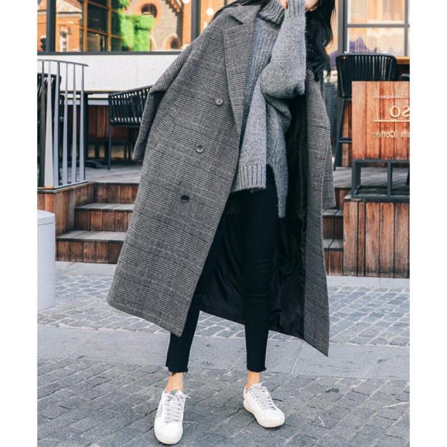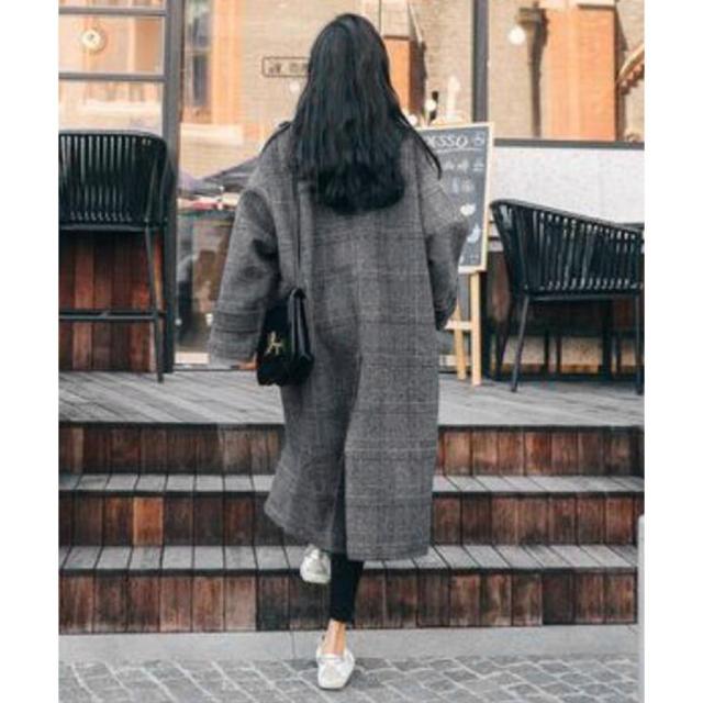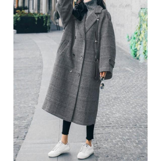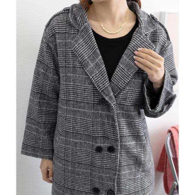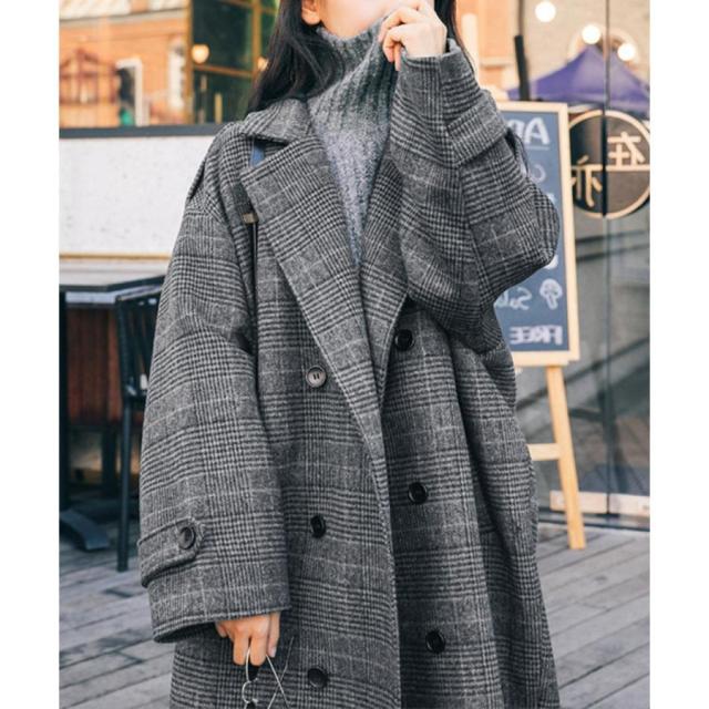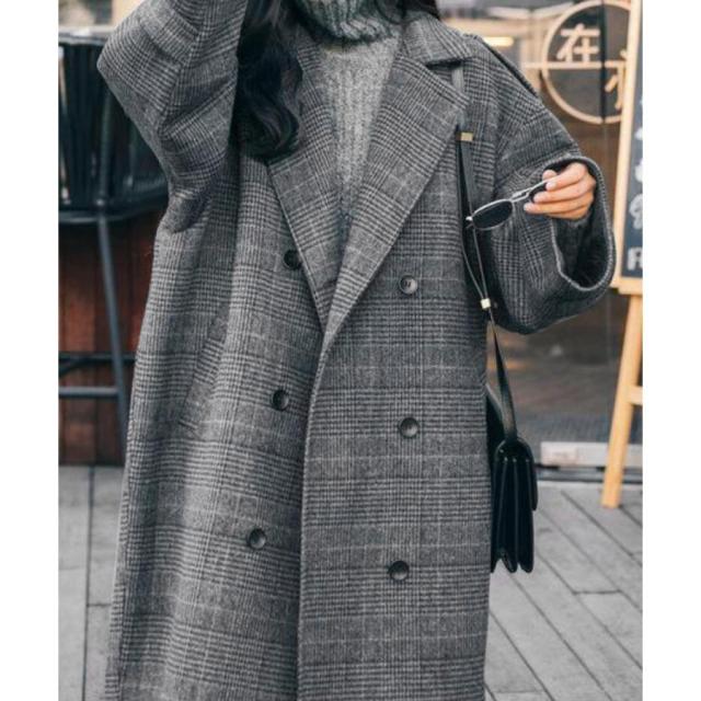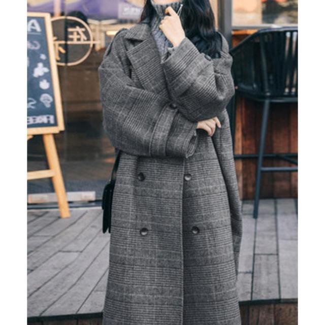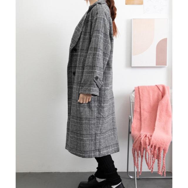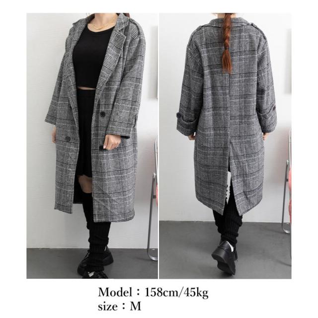 グレンチェックコート秋冬 カジュアルきれいめ オーバーサイズロングコート ダブルブレスト 暖かいアウター バックスリット