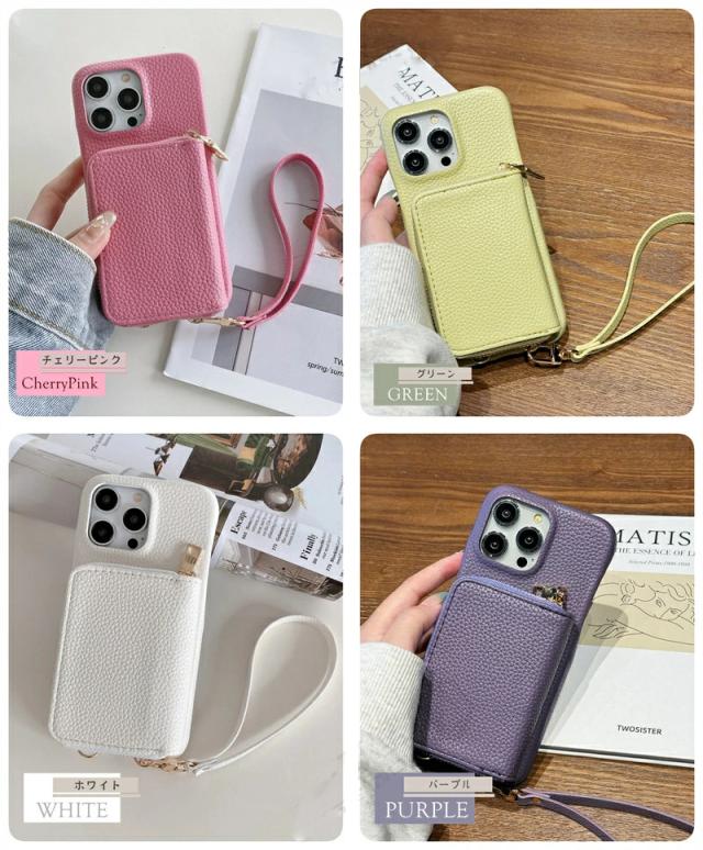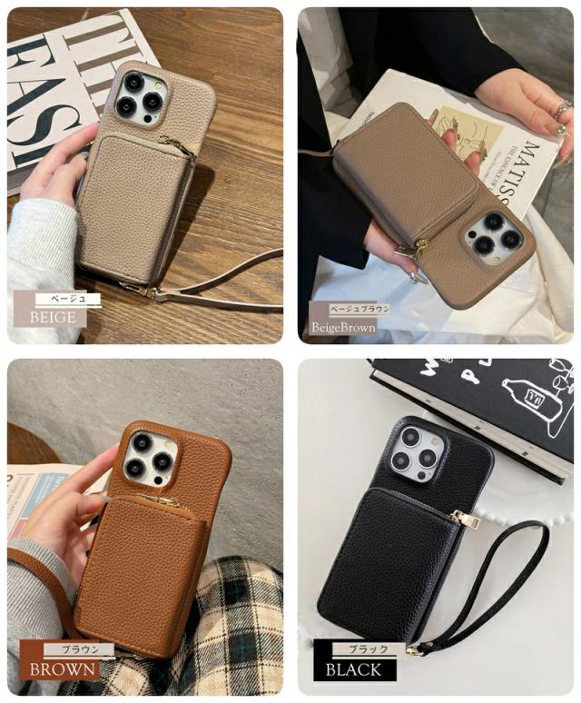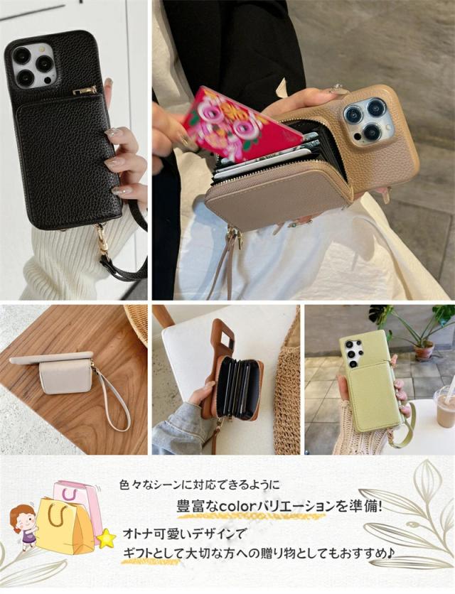 スマホケースストラップ付き iPhone 17 16e 16Pro 16Plus 13Pro Max 14 15 15Pro 15Plus 12Pro Max 14Pro アイフォン16ケース アイホン11ケース 耐衝撃 おしゃれ かわいい 可愛い カード スマホケース カバー ファスナー式ポケット 小銭入れ スタンド機能 韓国