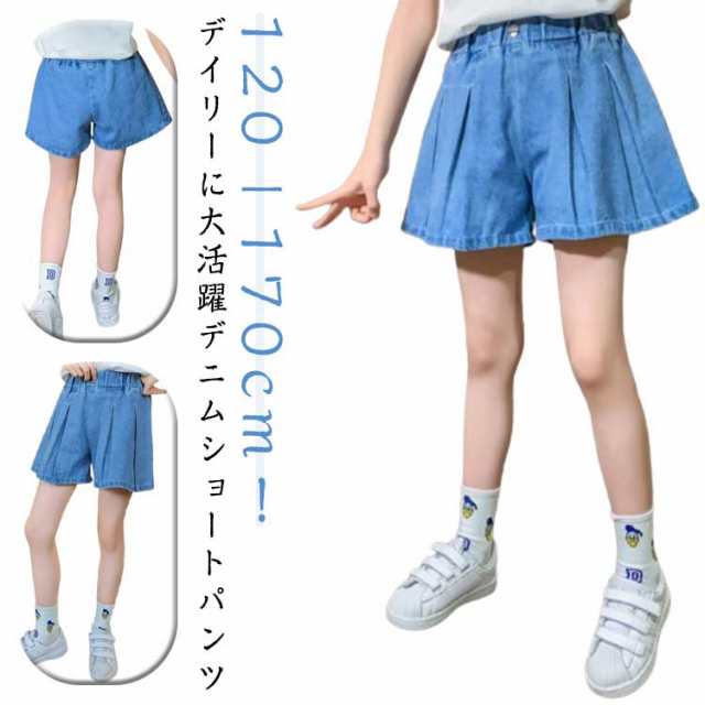 女の子 ショートパンツ デニムパンツ 子供服 夏用 ジュニア ショートパンツ デニムショートパンツ 短パン 半ズボン ボトムス ハイウエスト 春夏 可愛い 大きいサイズ 無地 シンプル ハイウエスト かわいい オシャレ キッズ服 キッズウェア