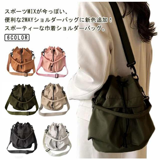 巾着バッグ ハンドバッグ レディース ショルダーバッグ かばん 斜めがけ トートバッグ 手提げ 2way トート バック マチあり 鞄 小さめ ポシェット 撥水 サブ 軽量 ワンショルダーバッグ 巾着バッグ ショルダー ドロストバッグ シンプル おしゃれ 通勤