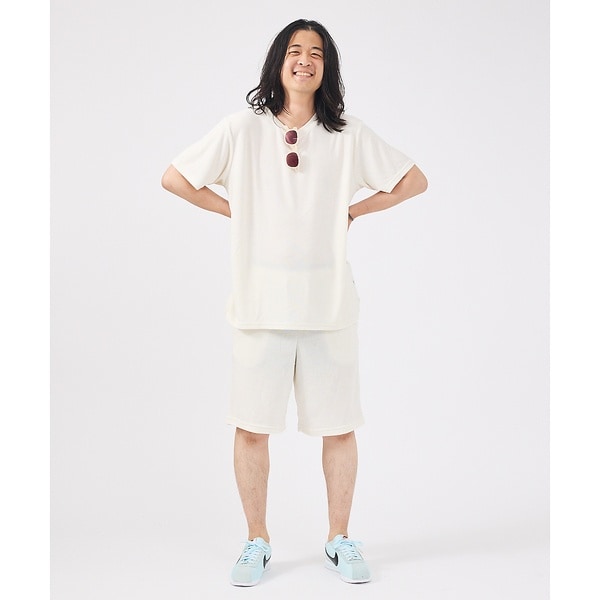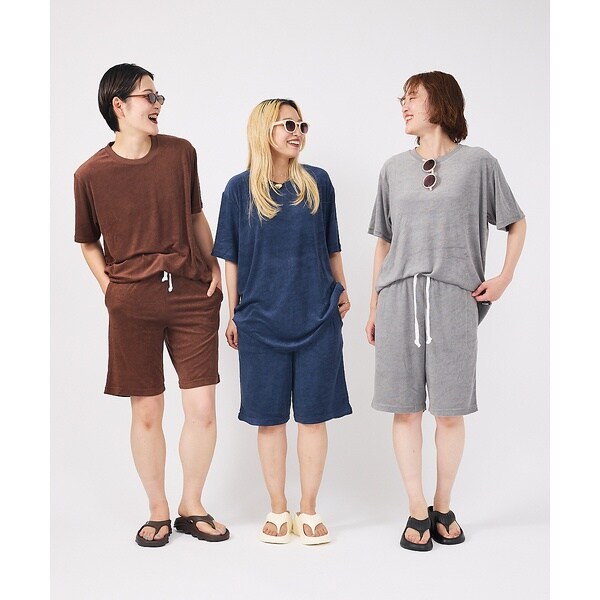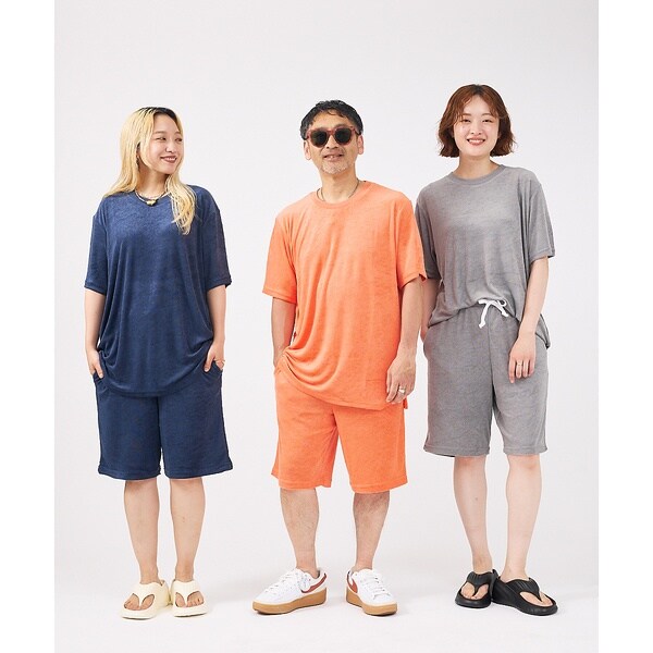 気持ちいい肌触りのパイル地ルームウェアセット上質なタオルのような質感のサラッとした肌触りと伸縮性に優れたパイル生地。