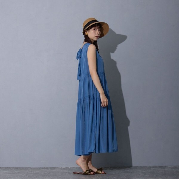 ギャザーをたっぷりと寄せたティアードデザインとバックリボンが女性らしさを演出してくれます。