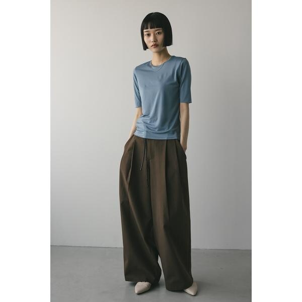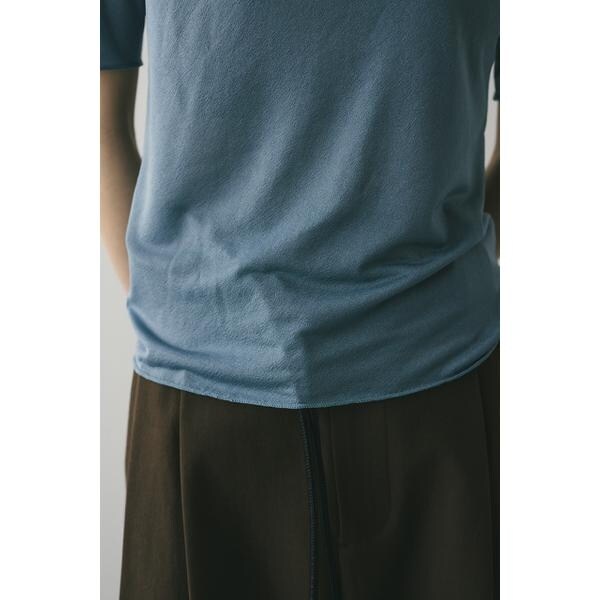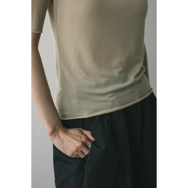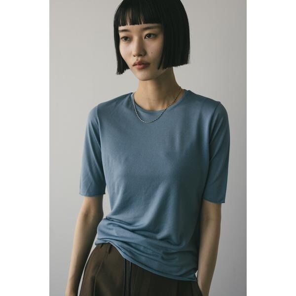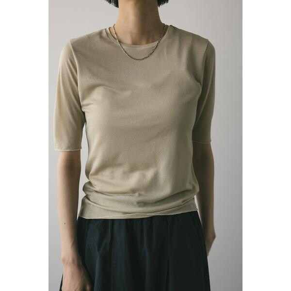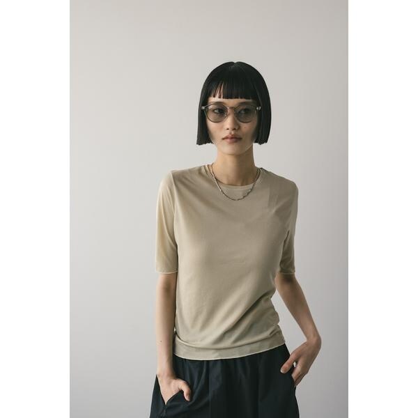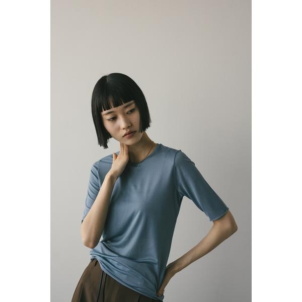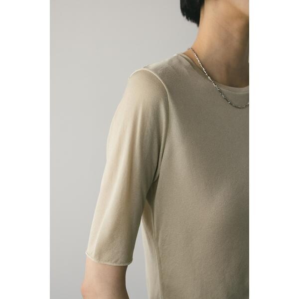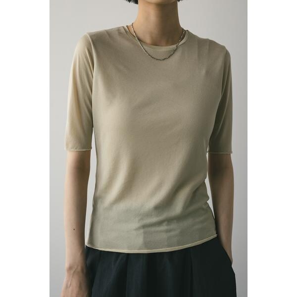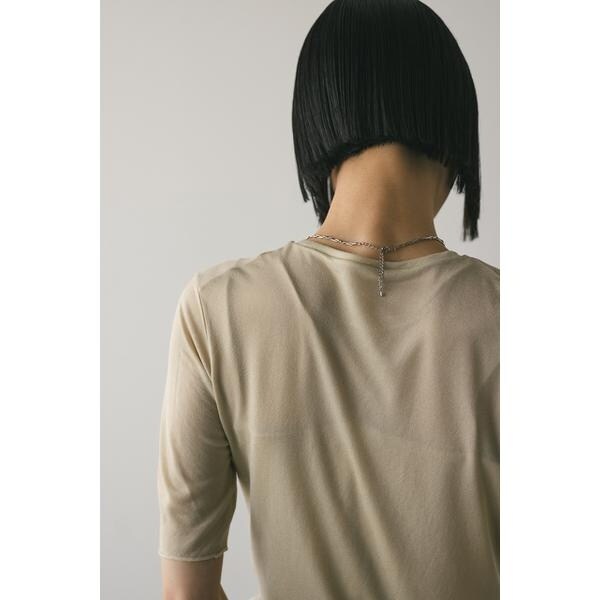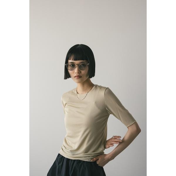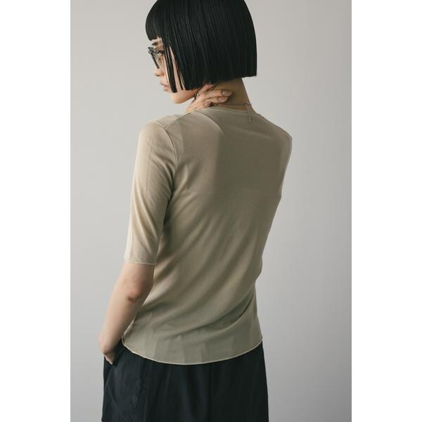WHT,BLK:モデル身長165cm(FREEサイズ着用)BEG,BLU:モデル身長166cm(FREEサイズ着用)ストレッチ素材で着心地の良いシアーカットソー。コンパクトな丈設定でスタイリングしやすいアイテム。ほのかな透け感で抜け感とモード感をプラスしてくれます。華奢なネックラインですっきりとした印象で着用していただけます。透け感あり、ストレッチあり。【お手入れ方法】手洗い可
