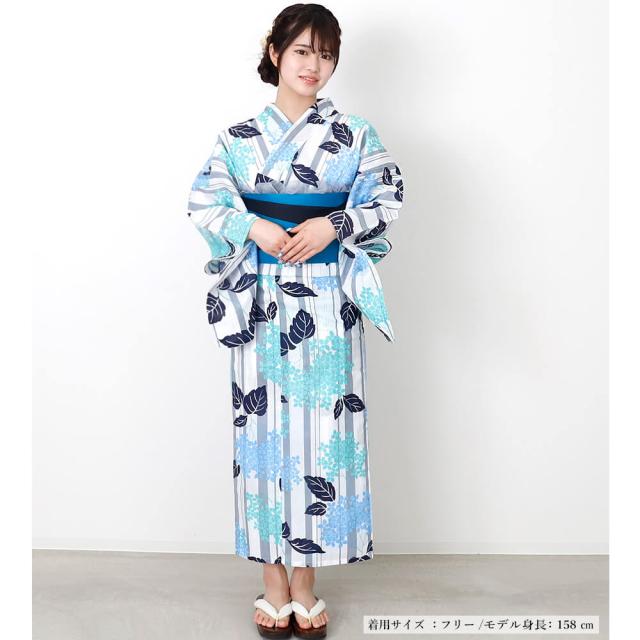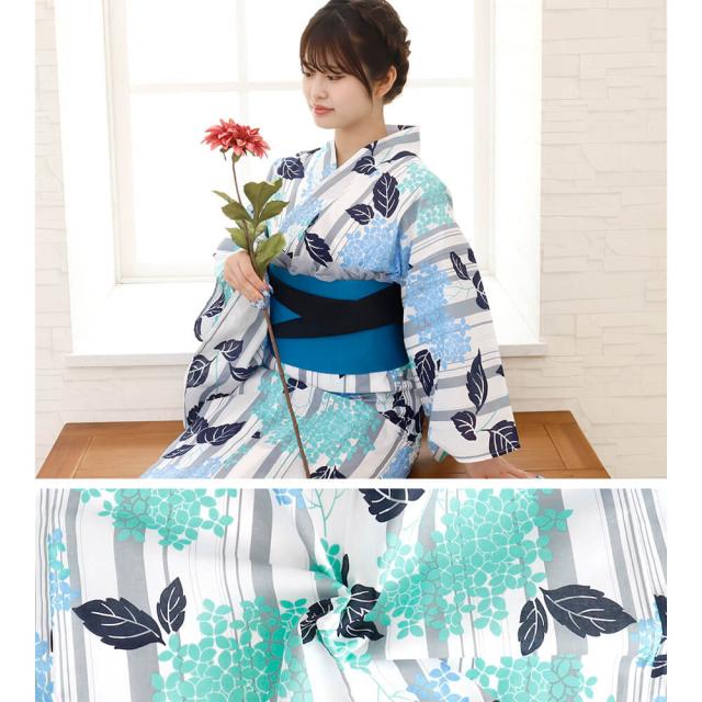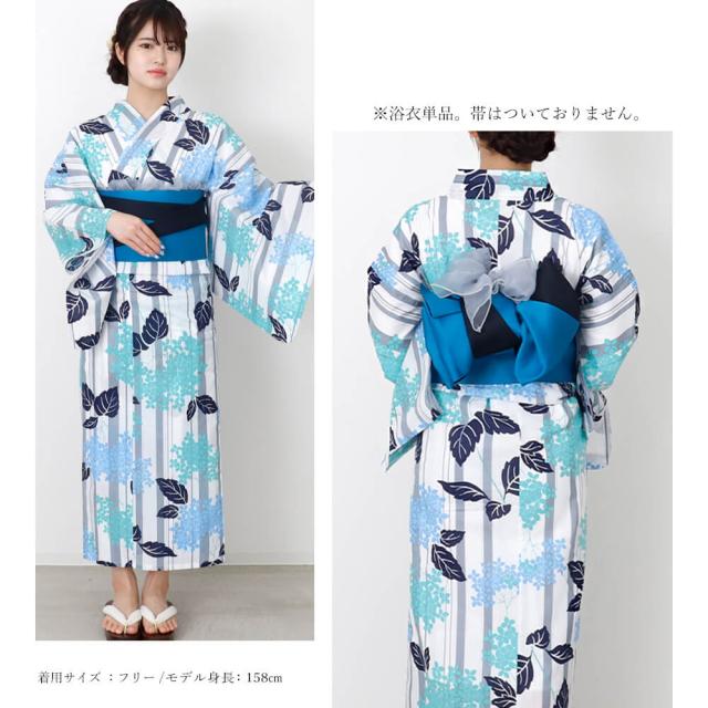 浴衣 レディース 女性浴衣 単品 浴衣単品 仕立て上がり 浴衣レディース 女性用 白 青 グレー 縞 ストライプ 紫陽花 花柄