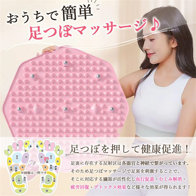 【マッサージの設計】: マッサージマットの上に複数のマッサージスポットを設計し、足の裏の異なるツボに対応し、正確に刺激し、血液循環を促進し、専門級の足の裏マッサージ体験をお届けします。
