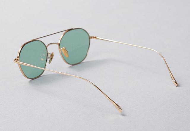 質感とシルエットを楽しむ 多角形×ツーブリッジタイプのサングラス。軽くて丈夫、かつ高級感のあるチタン混のメタルフレームに、角の取れた緩やかな多角形レンズを採用し、ヴィンテージアイウェアに通ずる雰囲気を残しつつも馴染みやすく掛けやすいシルエット。
