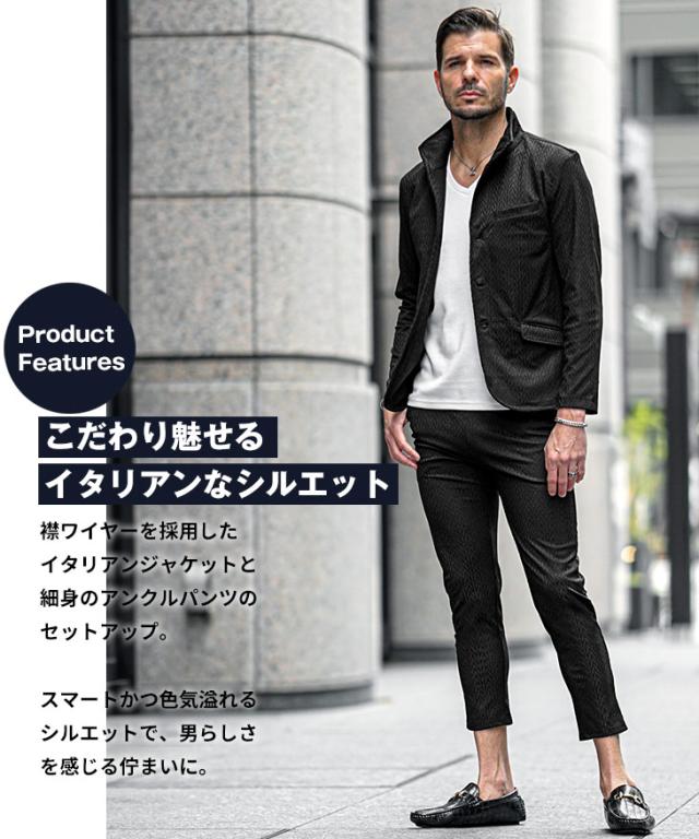 セットアップ メンズ ジャケット テーラードジャケット 春 夏 新作 上下セット イタリアンカラー テーパード スリム オラオラ系 お兄系 イケオジ メンズファッション
