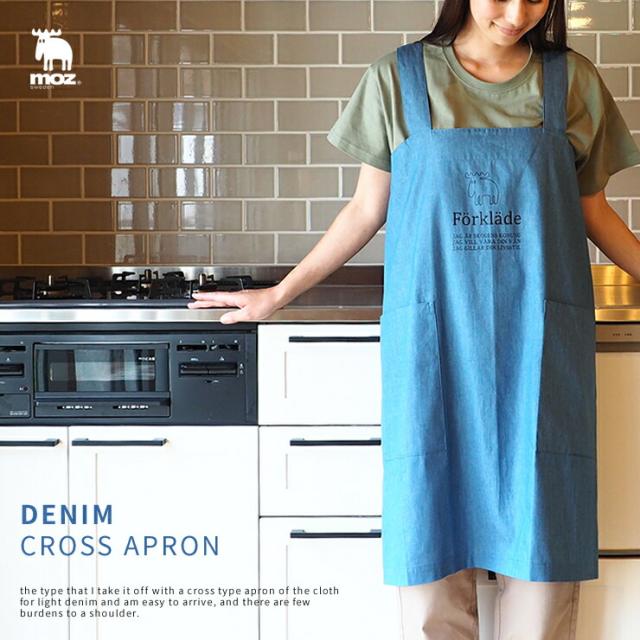 moz モズ エプロン moz swedenデニムクロスエプロン ( moz モズ 公式 グッズ エプロン おしゃれ 北欧 お尻が隠れる ブランド たすき掛け )