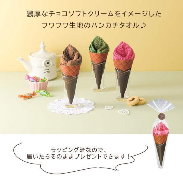 ●濃厚なチョコソフトクリームをイメージしたフワフワ生地のハンカチタオルです
