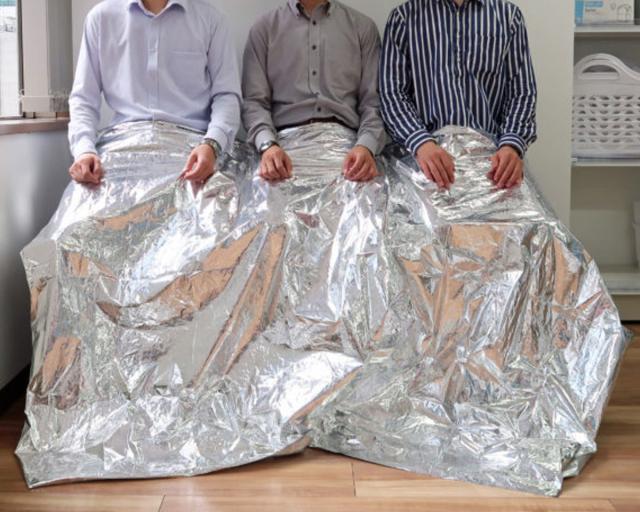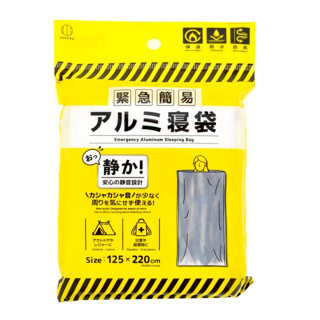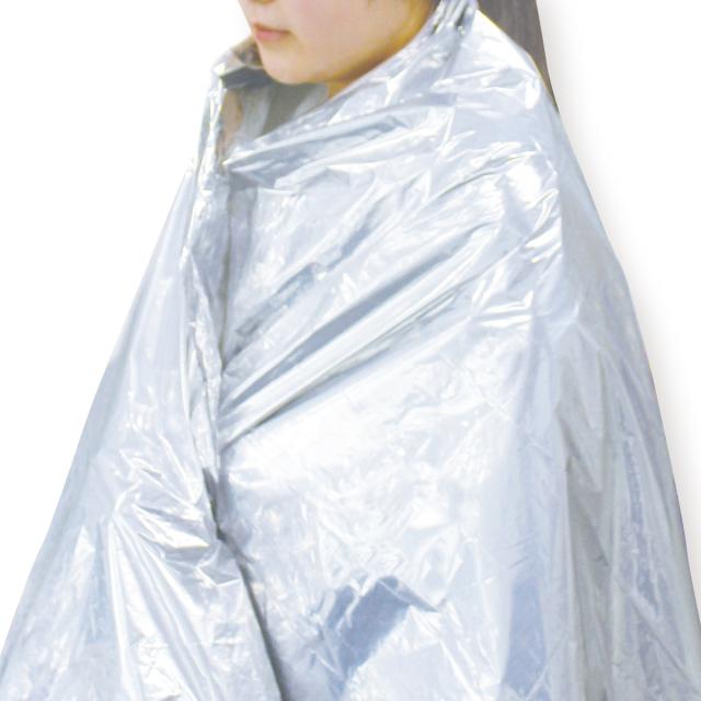 災害・避難時の防寒用として、簡易的に使えるブランケットです。アルミニウム特有のシャカシャ音を少なくした静音タイプなので、避難時や就寝時に周囲への音を気にせず休めます。