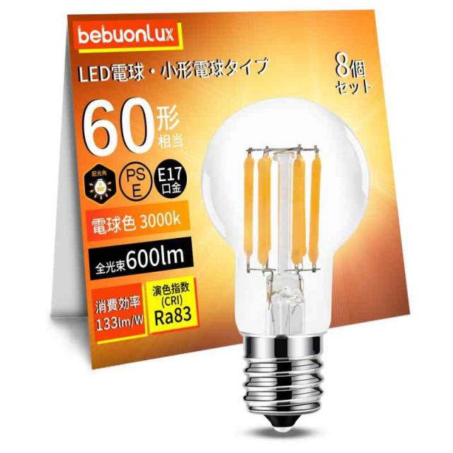 フィラメント電球 ミニクリプトン電球 LED電球 電球色 全方向タイプ クリア電球 省エネ (E17-600lm-8個入)