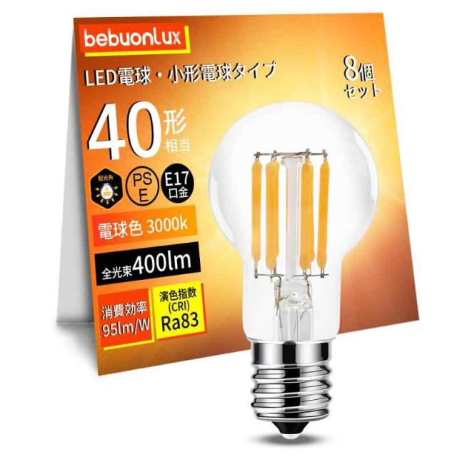 フィラメント電球 ミニクリプトン電球 LED電球 電球色 全方向タイプ クリア電球 省エネ (E17-400lm-8個入)
