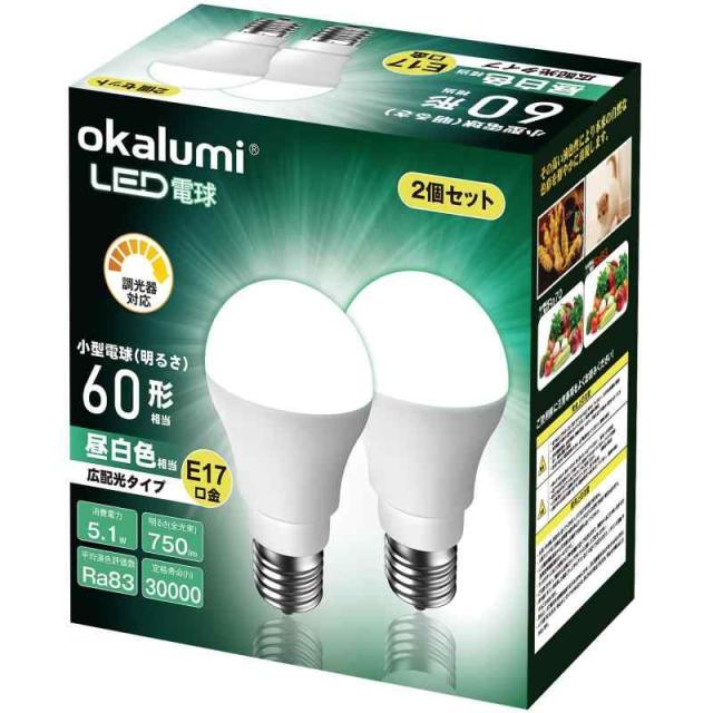LED電球 E17口金 電球色昼白色昼光色 40W60W相当 断熱材器具対応 ミニクリプトン電球 2個セット6個セット (昼白色-60W, 2個セット-調光器対応)
